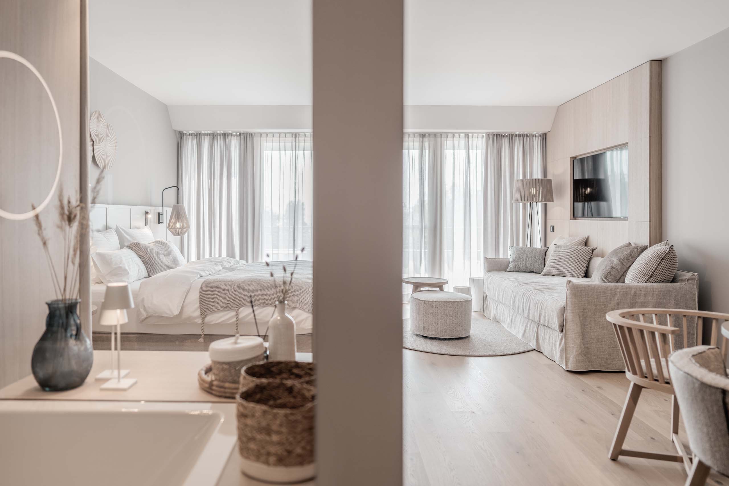 Erlebe pure Entspannung in unseren Zimmern am Neusiedler See. Natürliche Materialien, warmes Design und absolute Ruhe schaffen einen Rückzugsort, der sich sofort richtig anfühlt.